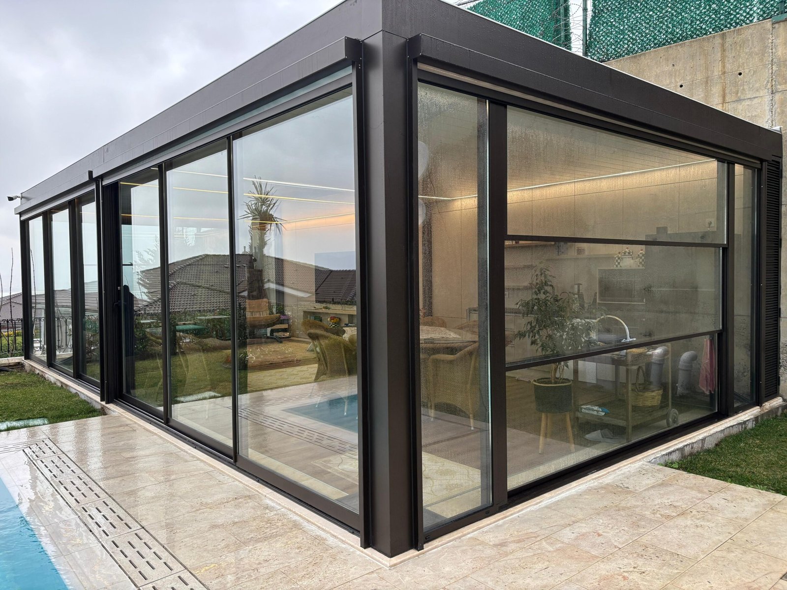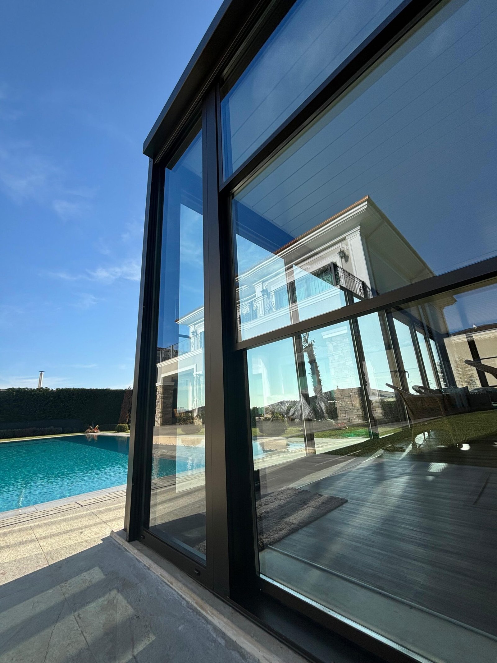 Özel tasarım giyotin cam sistemleri, mekanlara kesintisiz panorama, görüş alanını sınırlamadan manzara ile buluşturma imkanı sunar. Kolay kullanım ile üst düzey konfor sağlamaktadır.